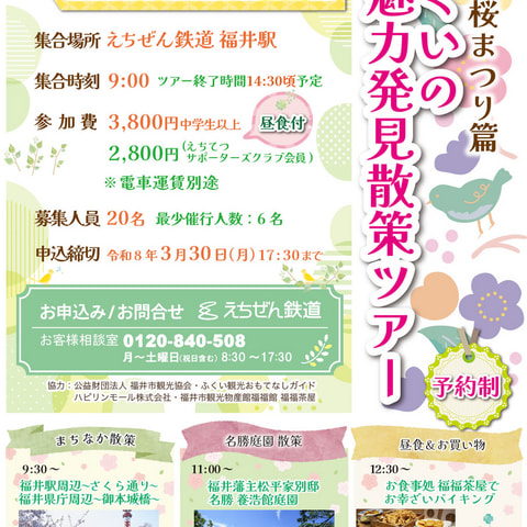 ふくいの魅力発見散策ツアー(ふくい桜まつり篇)参加者募集!!