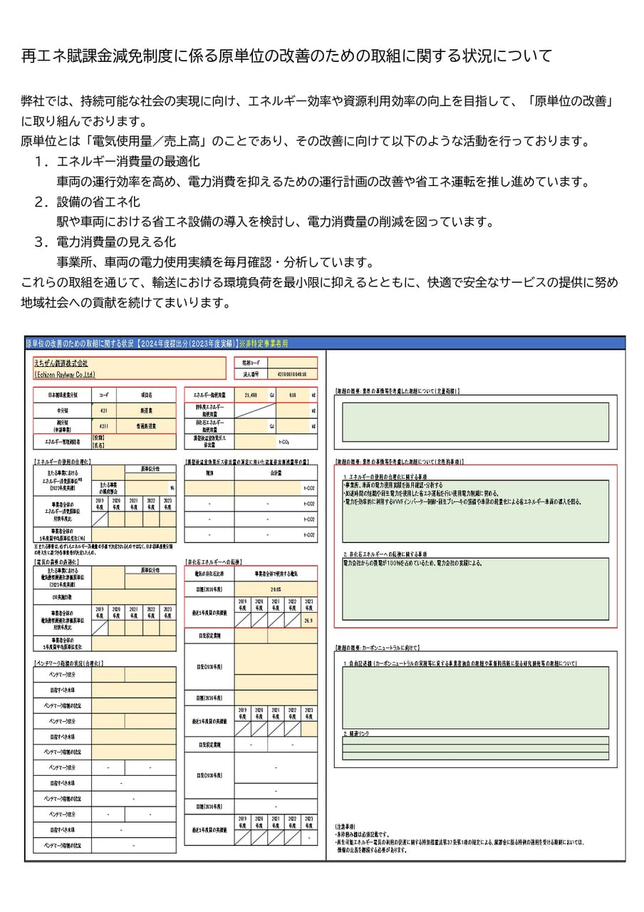 再エネ賦課金減免制度に係る原単位の改善のための取組に関する状況についてお知らせいたします。