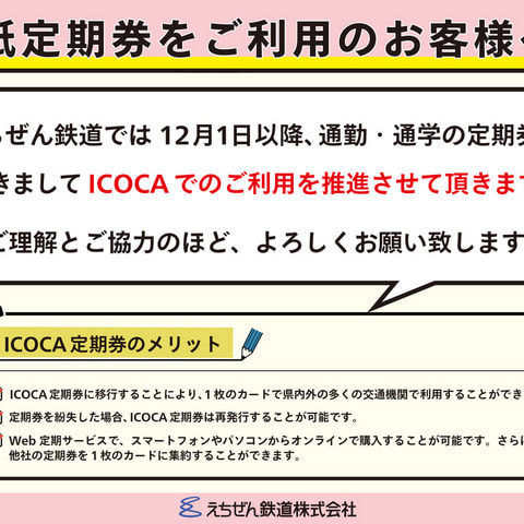 新入学生の皆様向け 通学定期券についてのお知らせ