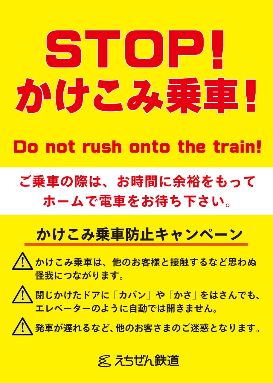 現在、えちぜん鉄道では「かけこみ乗車防止キャンペーン」を実施しております。