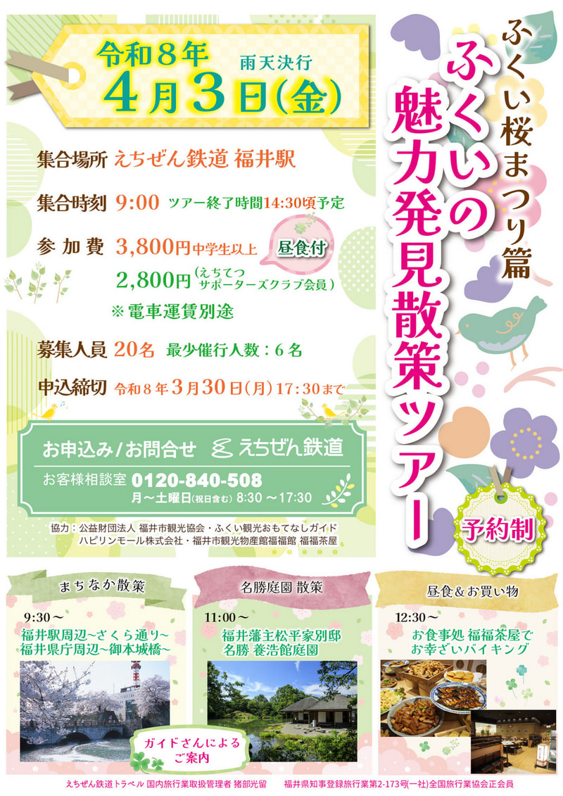 4月3日(金) 9:00 えちぜん鉄道 福井駅集合